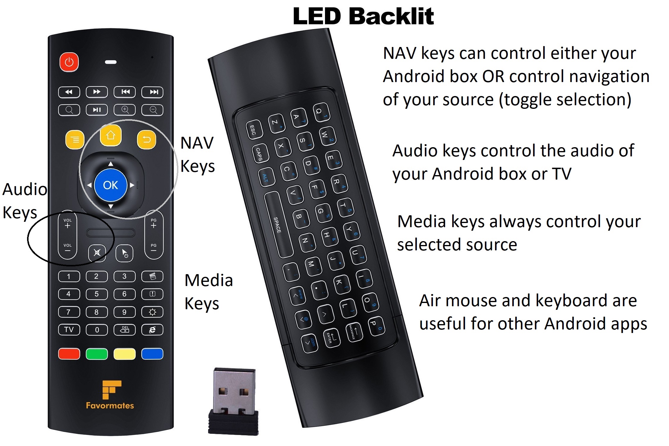 You can enhance this control experience by adding better wireless remote controls such as these shown below (only around ~$20). These remotes allow direct key mapping to control your sources (do not need to use the on screen popup menu). The Air Mouse function also works really well for SplashTiles interactive sources!